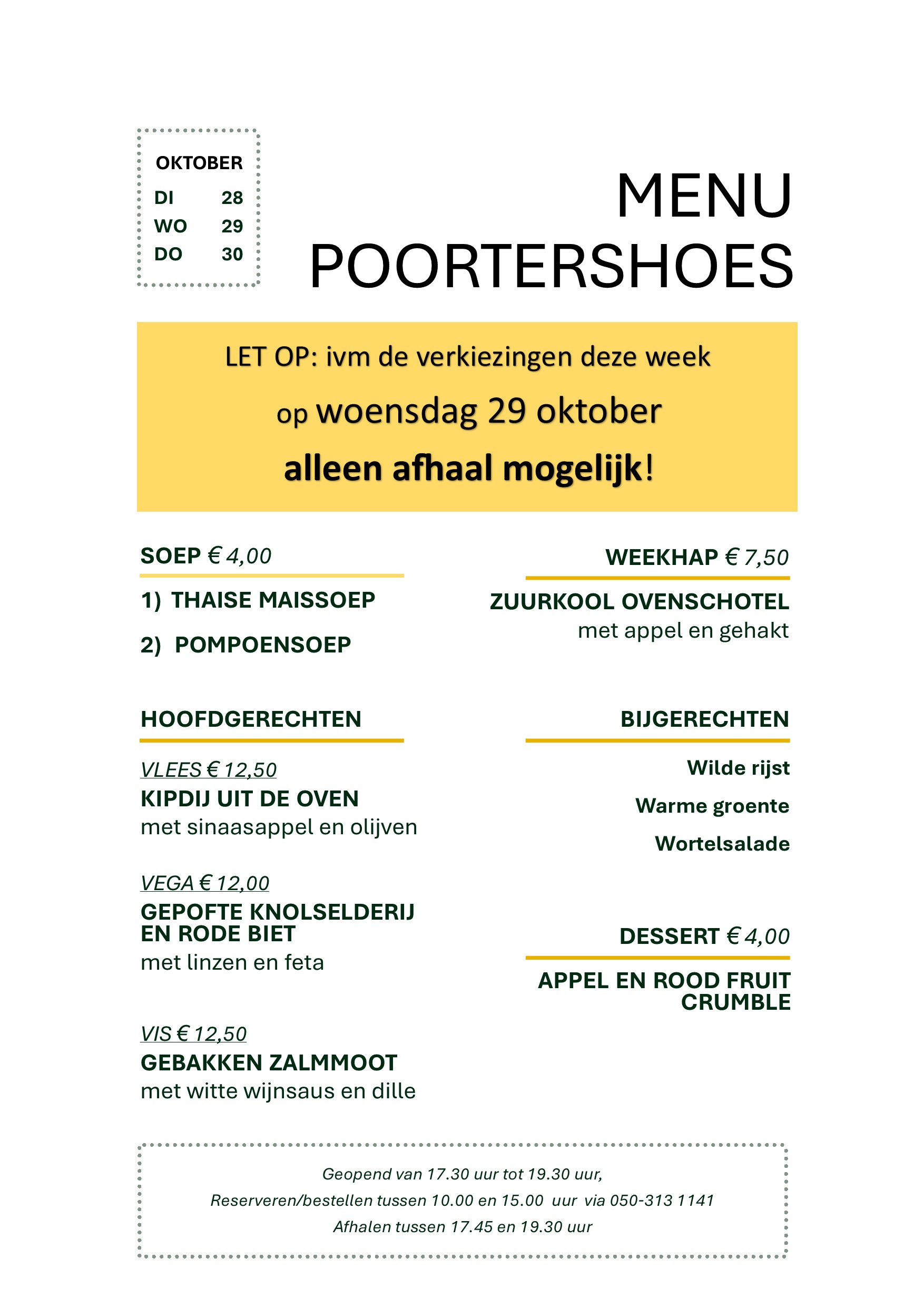 Graag reserveren voor 15.00 uur, afhalen is ook mogelijk.